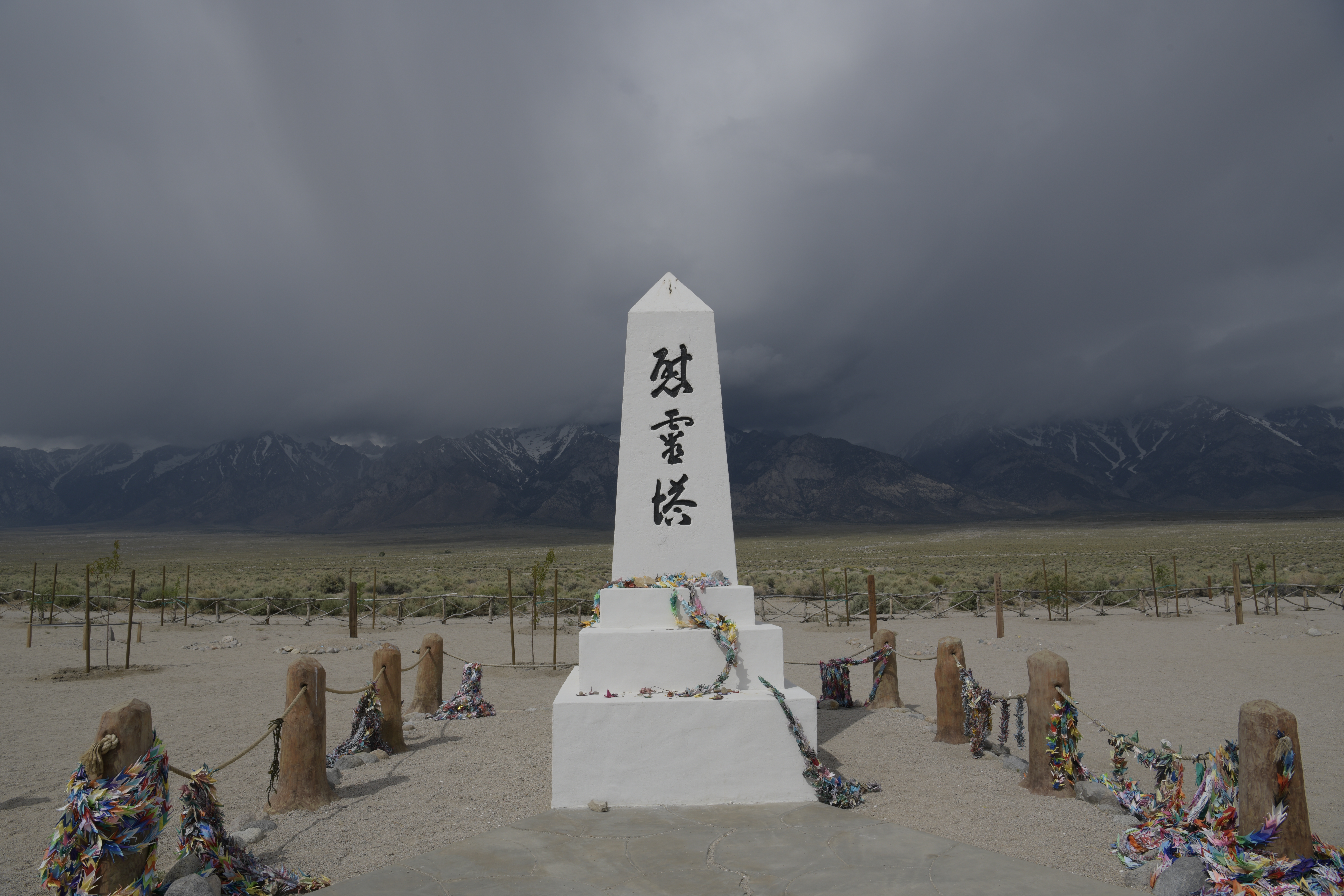 The southwestern edge of Mono Lake, look west to the eastern boundary of Yosemite National Park in the Sierra Nevada, June 2023.Mono Lake with some of its tufa formations, June 2023.The cemetery and obelisk at Manzanar, a Japanese-American relocation (concentration) camp during World War II. It was an American travesty. The Manzanar site is located between Lone Pine and Independence, California. June 2023.